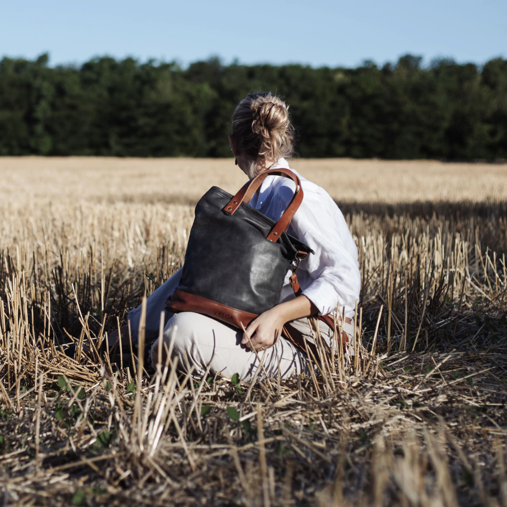 Nuestras carteras están hechas con cuero argentino de la más alta calidad en combinación con tela de cáñamo y algodón orgánico, teñida a mano con tintes naturales, con cierres y remaches color bronce.