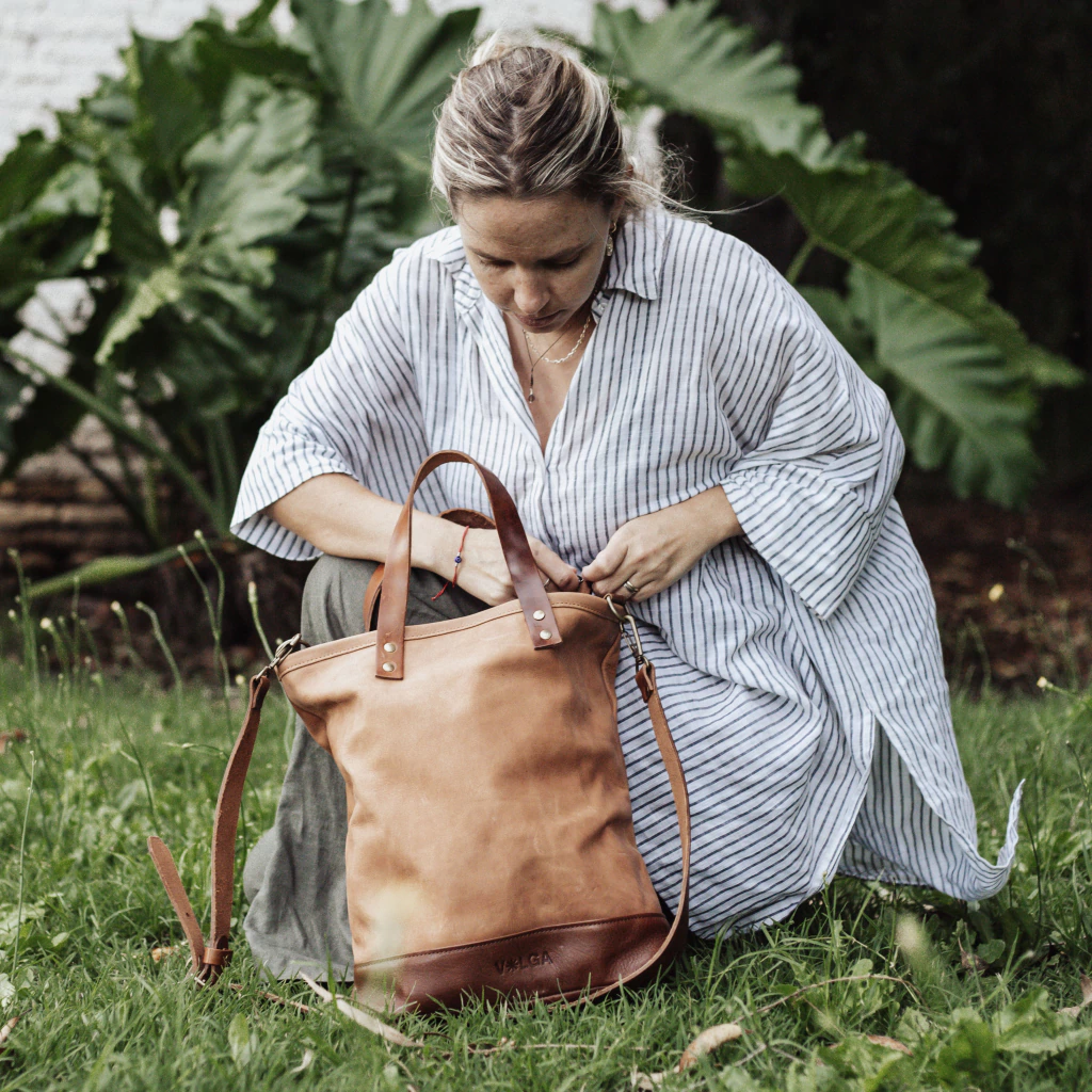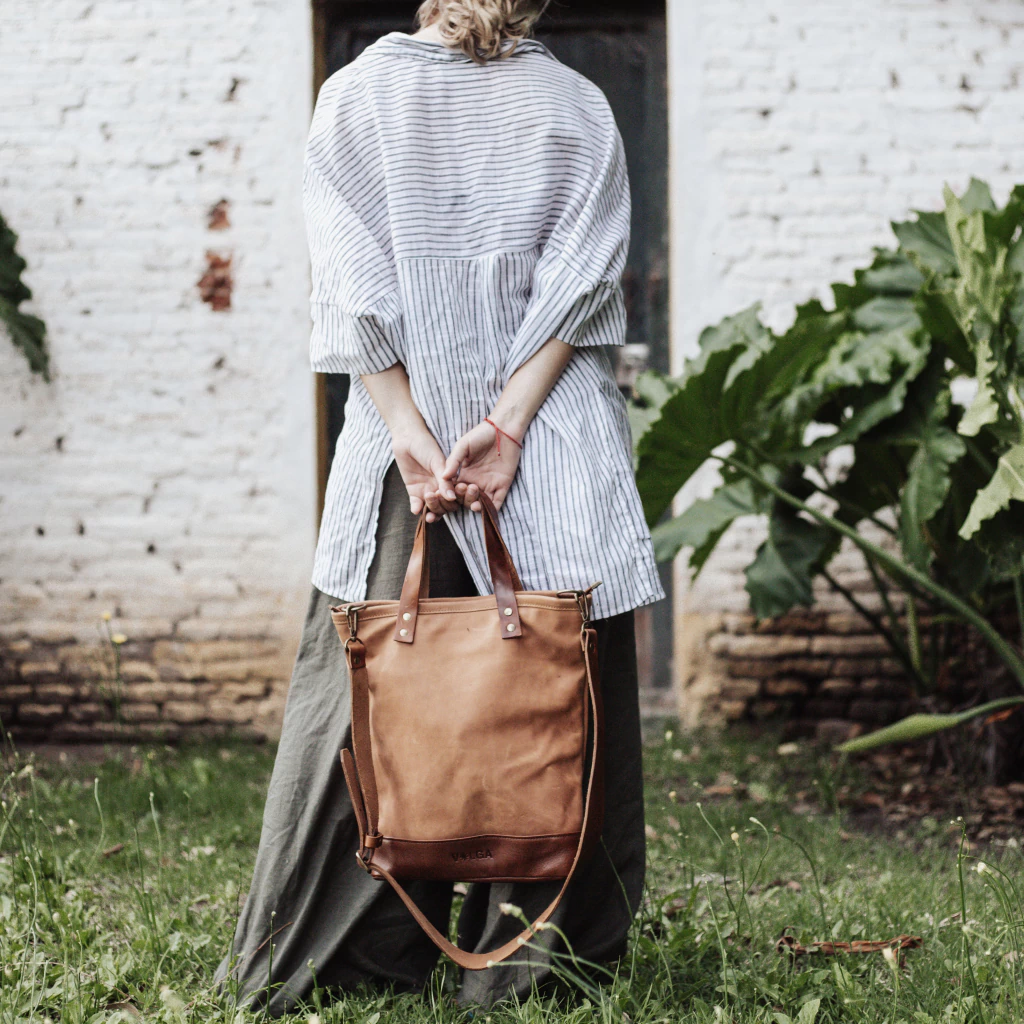 Nuestras carteras están hechas con cuero argentino de la más alta calidad en combinación con tela de cáñamo y algodón orgánico, teñida a mano con tintes naturales, con cierres y remaches color bronce.
