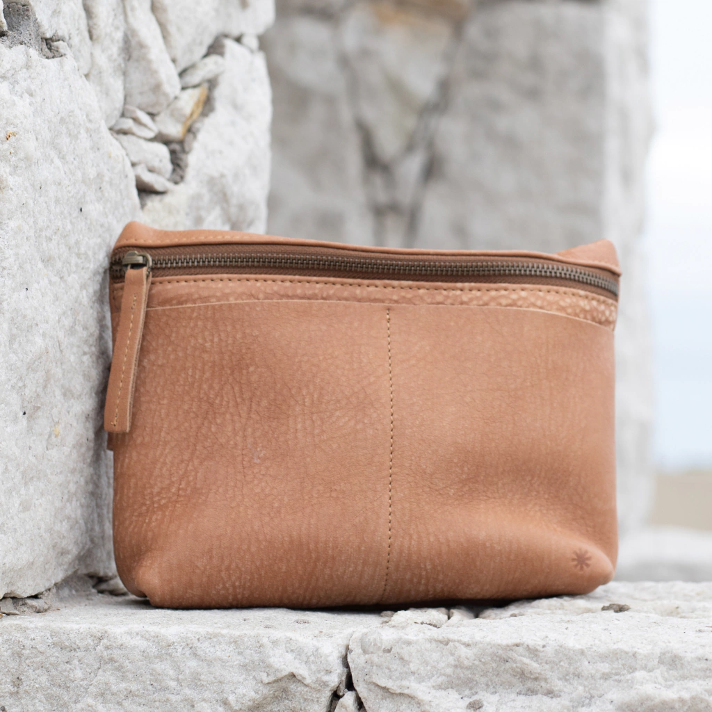 The Volga necessaire is perfect for everyday use. It has two front leather pockets, an internal multifunction zip pocket and an exterior leather grip tape.